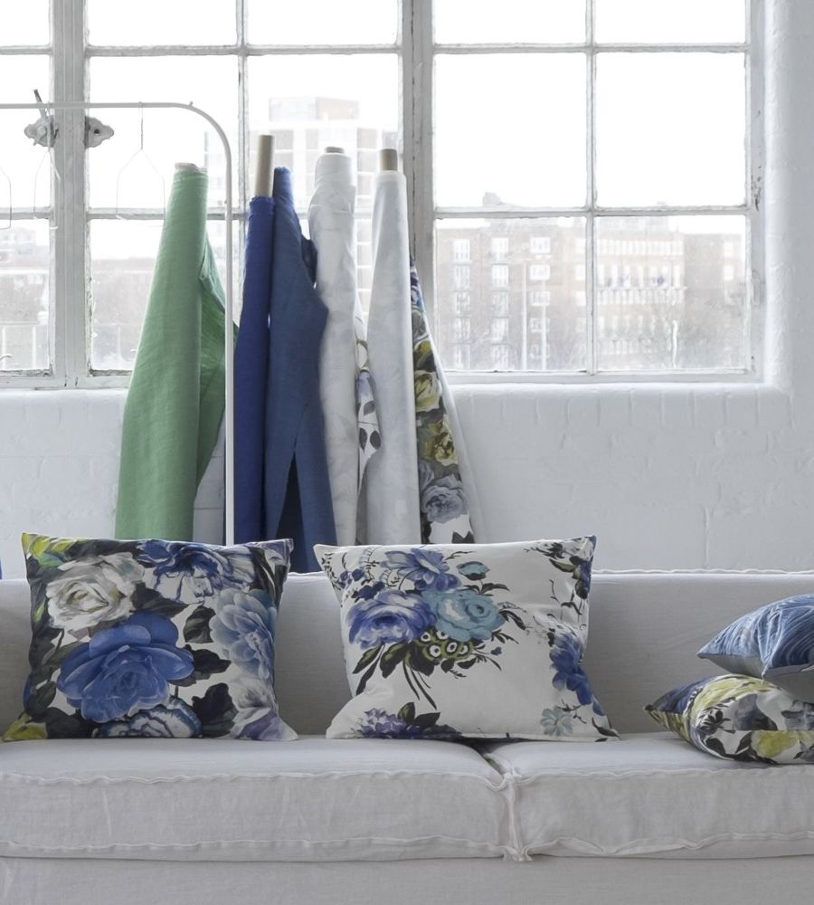 Designers Guild Pandora II Cobalt virágmintás textil. Az Orangerie kollekció a Designers Guild legnépszerűbb digitális nyomással készült virágos textiljeit tartalmazza – megújult színekben, újragondolt arányokkal. Az anyagok alkalmazhatóak sötétítő és dekor függöny varrásra, takaró és díszpárna készítésre, valamint bútorkárpitozásra. A Designers Guild lakberendezési márka alapítója a híres angol tervező Tricia Guild, a látványos minták és élénk színek nagymestere. Színpompás függöny és kárpit anyagai, tapétái és szőnyegei hatalmas népszerűségnek örvendenek világszerte belsőépítészek és lakberendezők körében.