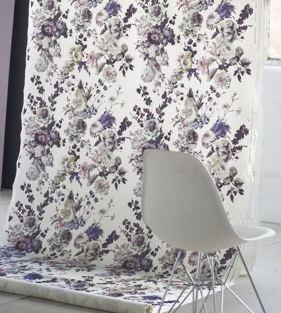 Designers Guild Seraphina II Heather virágmintás textil. Az Orangerie kollekció a Designers Guild legnépszerűbb digitális nyomással készült virágos textiljeit tartalmazza – megújult színekben, újragondolt arányokkal. Az anyagok alkalmazhatóak sötétítő és dekor függöny varrásra, takaró és díszpárna készítésre, valamint bútorkárpitozásra. A Designers Guild lakberendezési márka alapítója a híres angol tervező Tricia Guild, a látványos minták és élénk színek nagymestere. Színpompás függöny és kárpit anyagai, tapétái és szőnyegei hatalmas népszerűségnek örvendenek világszerte belsőépítészek és lakberendezők körében.