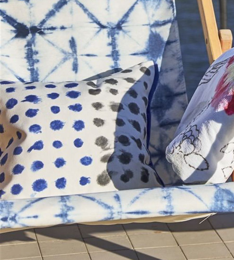 Designers Guild Amlapura Outdoor Graphite csíkos textil. A Designers Guild lakberendezési márka alapítója a híres angol tervező Tricia Guild, a látványos minták és élénk színek nagymestere. Színpompás függöny és kárpit anyagai, tapétái és szőnyegei hatalmas népszerűségnek örvendenek világszerte belsőépítészek és lakberendezők körében.