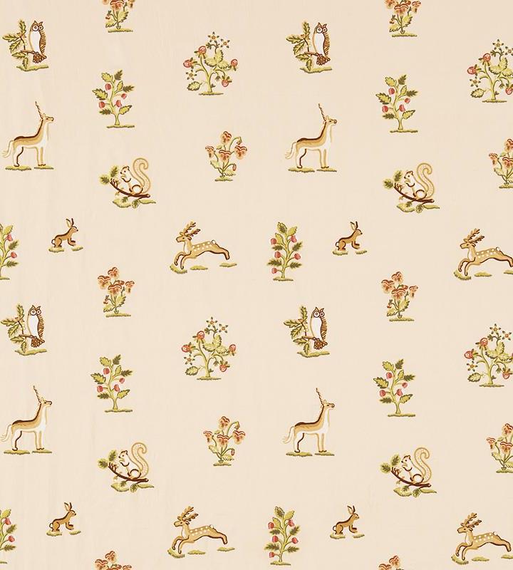 Sanderson Clemence Russet/Sand állatmintás textil. A Sanderson Fabienne texil kollekció klasszikus és kifinomult textileket tartalmaz, melyeket a gyönyörű francia vidéki kastélyok ihletették. Ebben a kollekcióban kézzel festett virág, levél és barokk mintás textileket és hímzett szöveteket találhatunk számos árnyalatban. A Fabienne kollekció egyik különlegessége az elegáns madár mintás Abbeville dekor és a luxuskivitelű hímzett Angelique textil. A Sanderson a textilekhez illő tapétákat is ajánl. Az anyagok alkalmazhatóak sötétítő és dekor függöny varrásra, takaró és díszpárna készítésre, valamint bútorkárpitozásra. A gazdag történelemmel rendelkező Sanderson a világ egyik legnevesebb textil és tapéta gyártója, amely rendelkezik az angol királyi udvar hivatalos beszállítója címmel. Leginkább a nyomott mintás tapétáiról és textiljeiről híres, de kínálatában prémium minőségű szőnyegek és lakás kiegészítők is találhatóak.