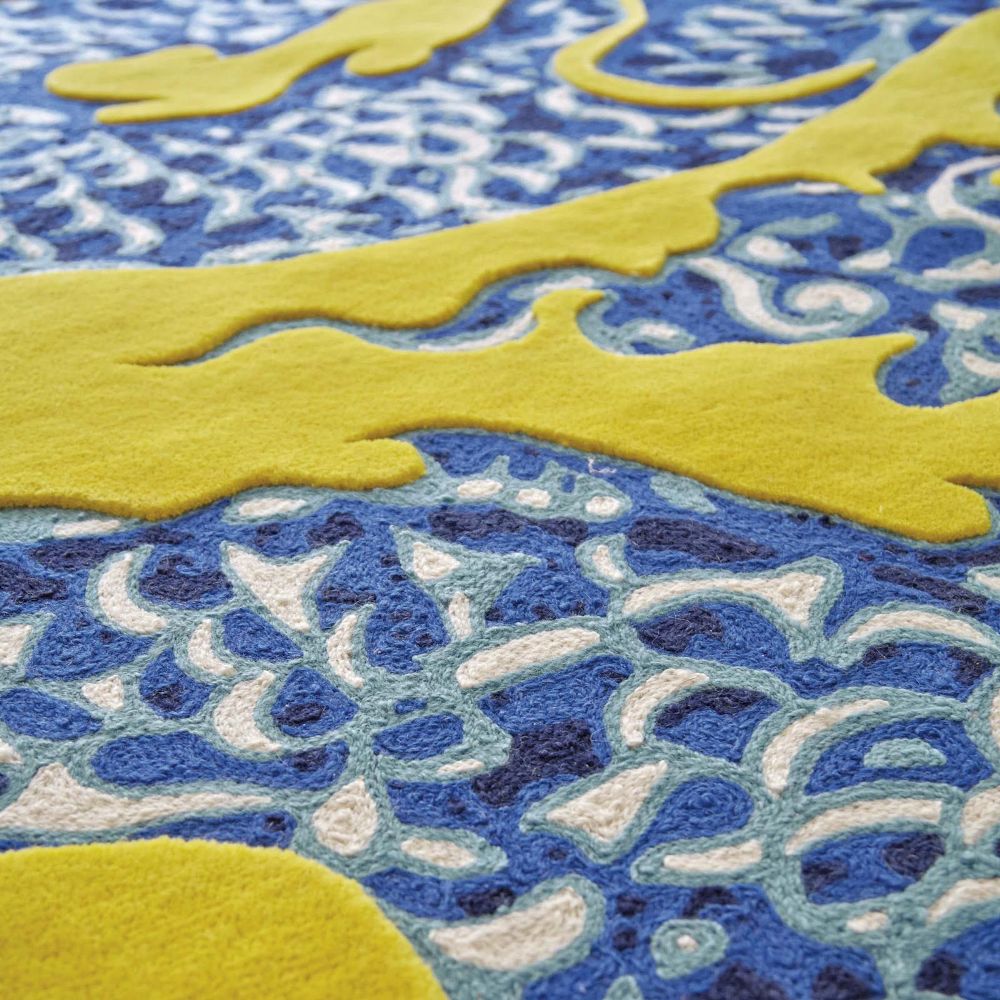 GAN Rugs Blue China Yellow egyedi design szőnyeg. A GAN egy igazán különleges márka, szőnyegei tökéletesen ötvözik a kézi munka egyediségét és a modern trendek világával. Eklektikus minták, vagány színek és egyedi formák jellemzik a GAN szőnyeg kínálatát, amelyben a saját kollekciókon kívül számos neves tervező akolkótása is megtalálható (Patricia Urquiola, Sebastian Herkner, MUT Design, Odosdesign és Raw Edges studiók). Cégünk a GAN Rugs szőnyegeken kívül, számos prémium és exkluzív kategóriájú textil, tapéta és szőnyeg márka hivatalos magyarországi forgalmazója. A teljes kínálatot a budapesti üzletünkben lehet megtekinteni.