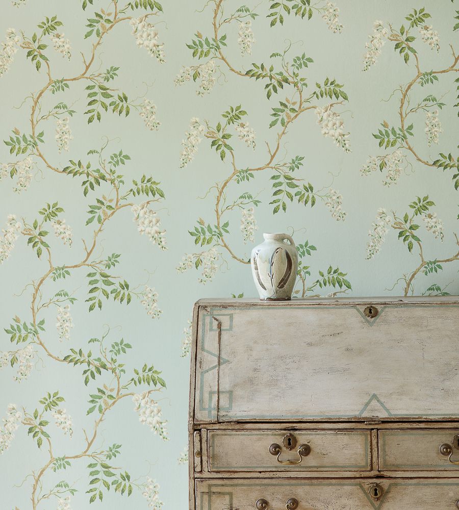 Colefax & Fowler Alderney Cream virágmintás tapéta. A Colefax & Fowler Lindon tapéta kollekcióban megtálalhatunk klasszikus virágmintás, levél mintás, egyszínű és marokkói stílusú geometrikus tapétákat, melyek több árnyalatban rendelhetőek. A Lindon kollekció különlegessége a gyönyörű Alderney dekor wisteria virágokkal. A Colefax & Fowler a tapétákhoz illő függöny és kárpit anyagot is ajánl. Az angol Colefax & Fowler textil és tapéta gyartó majdnem száz éve dicsőíti klasszikus angol eleganciát. Legyen szó bármelyik angol stílusú függöny anyagról, bútorszövetről vagy tapétáról, a Colefax & Fowler kínálatában Ön biztosan megtalálja a megfelelőt. A Colefax and Fowler csoportjában más textil és tapéta márkák is vannak - az amerikai Cowtan and Tout és Larsen, az angol Jane Churchill és a francia Manuel Canovas.