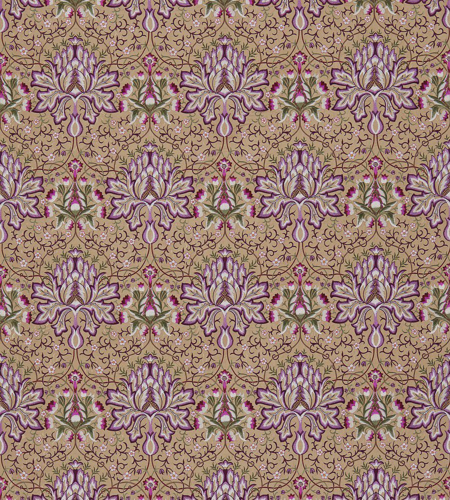 Artichoke Embroidery Aubergine-Gold - William Morris textil