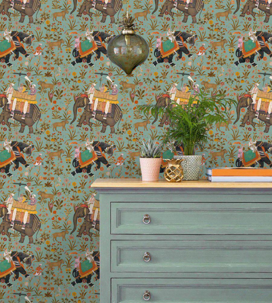 MINDTHEGAP Hindustan Aquamarine állatmintás tapéta.